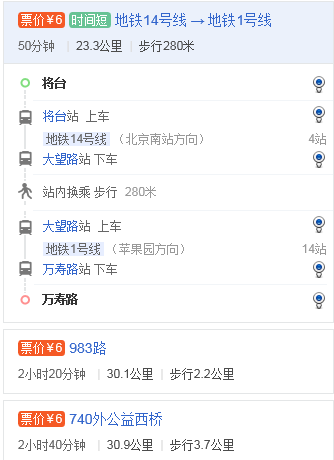 將臺路到海淀萬壽路23.3公里,坐地鐵14號線4站,到大望路站轉(zhuǎn)地鐵一號線14站到達(dá)。具體位置和線路如圖所示。